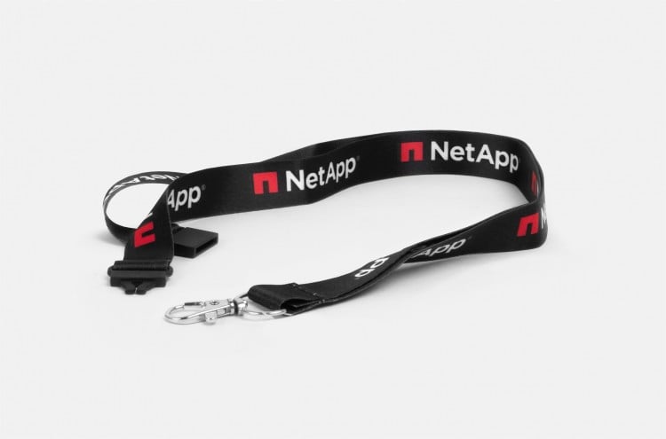 These lanyards are sure to net people in for a conversation with Net App at their next event. Completed in smooth black polyester material for durability and comfort, a bold red and white repeat logo provides a crisp contrasting finish and entices the eye to these personalised lanyards.