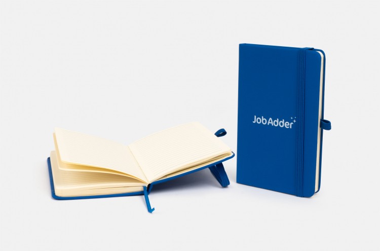 Bold in blue, this handy-sized notebook in PU Leather is advocating confidence at JobAdder. Flawlessly smooth and soft to give a deluxe finish, and filled with quality lined paper to keep the notes flowing, they offer the perfect template to any busy scribe. As far as we’re concerned, JobAdder have applied, interviewed and got the job for this distinct composition.