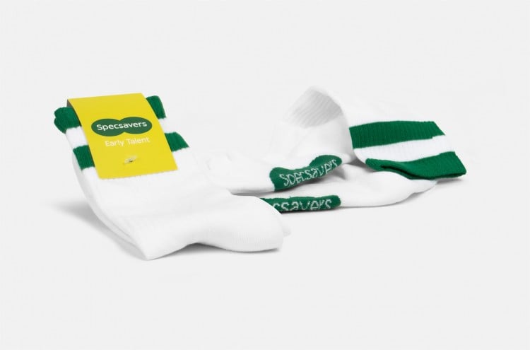 Specsavers are keeping their eyes on the ball with these 75% cotton sports socks. Expertly woven in brilliant white and adorned with sporting stripes in their iconic forest-green, Specsavers chose a simplistic and traditional design to let their colours and logo do the talking on these long lasting socks. Excellent vision!