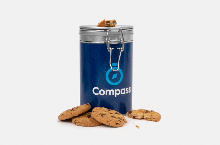 Compass are keeping their tasty treats secure with this Flip Top Biscuit Barrel. This sturdy container comes ready-loaded for indulgence with 12 individually-wrapped Maryland cookies. And that's not the only thing that's wrapped; the huge wraparound print area is ready to flag your brand to any snackers in full colour gloss. A smart and simple pattern of Compass’ logo to contain these sweet snacks embodies the spirit of work hard play hard.
