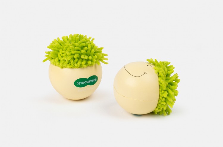 Stress is less and screens are clean at Specsavers, who requested these fun and custom-printed stress balls. The amusing and fresh lime-green fabric hair on these squishy heads not only lightens people's days; it also doubles up as a screen wiper, putting the fun in functionality! We love Specsavers' use of their classic green logo to contrast against the lighter colour of a generous branding area. The giveaway that keeps on giving!