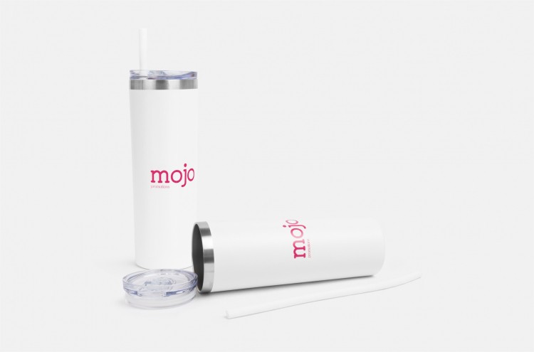 We opted for a brilliant white to make our pink pop on this premium tumbler. Oozing quality in BPA free stainless steel but preventing tumbles and spills with sturdy, durable materials and a matching silicone straw. Our design is printed front and centre and wrapped to the back for a simple yet stylish finish to on-the-go hydration.