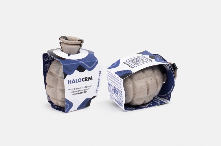 These innovative seedbombs are just exploding with fun! Shaped like a grenade but a force for good, HaloCRM were able to drop their branding onto the sleeves of these clever capsules in full colour print. Opposing black and white really draws in the eye, whilst that purple-hued branded pattern creatively ties everything together. HaloCRM really went out with a bang on this one!