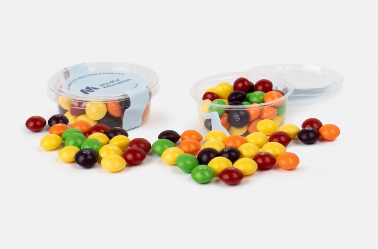 People will be sweet on Mindful Education with these Eco Pots filled with iconic treats! These lightweight pots of joy are the perfect handout at events or conferences. Framing the logo with text to follow the label’s curvature is both visually appealing and a smart use of the branding space. And not only that - it also draws attention to the eco-friendly materials used for these convenient containers, which are plant-based. Bravo for these branding choices!