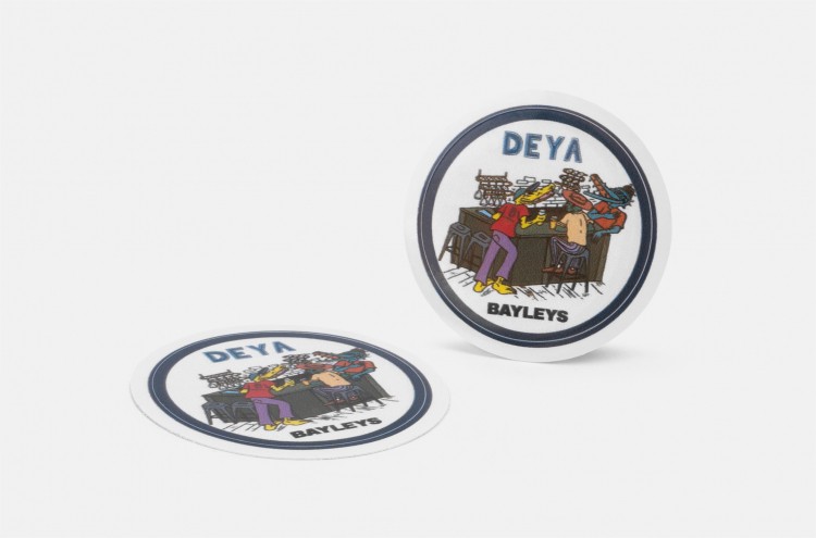 Deya are sticking to their guns with a creative design to these vinyl stickers. Custom printed to a high-quality finish and custom cut to any shape, we love the endless options that these stickers offer and the direction that Deya took theirs in; the white sticker and navy framed edge enables their select vibrant colours and fun illustration to take the spotlight, distinguishing them as a unique and playful brand.