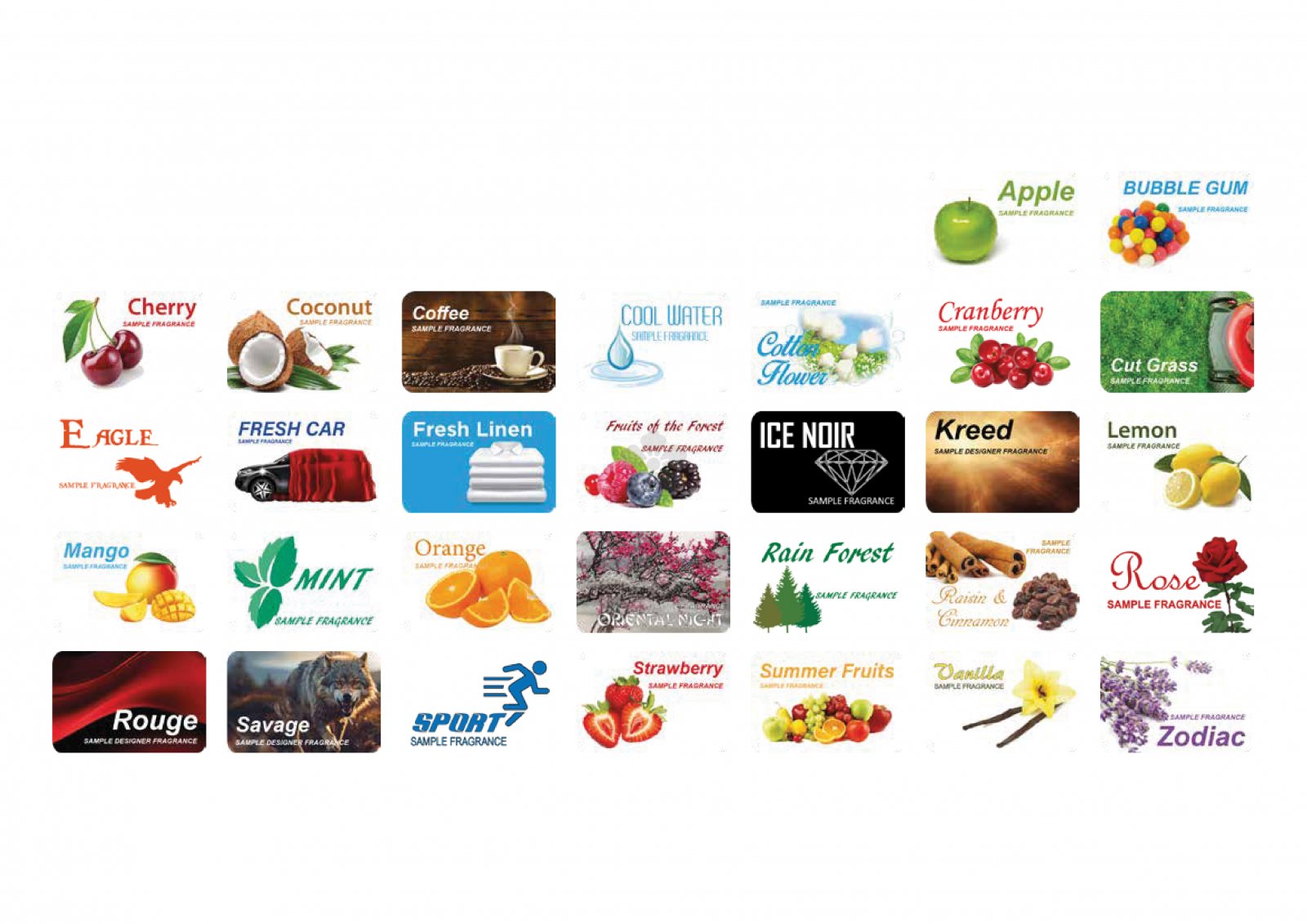Manufactured in the UK using 1500 micron pulp board from Sustainable Forests and fragrances containing Natural Oils, our Air Fresheners are fitted with choice of plastic hanger or elastic cord. Supplied individually bagged with header cards available - POA.
