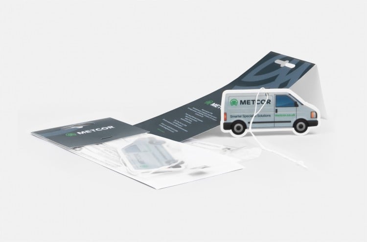 These natural oil-fragranced vehicle companions that Metcor decided on are a fun mini-me of their fleet vans - and we adore them! With an elastic cord to allow flexible hanging options, we're sure that the delightful aroma will keep Metcor calmly cruising.