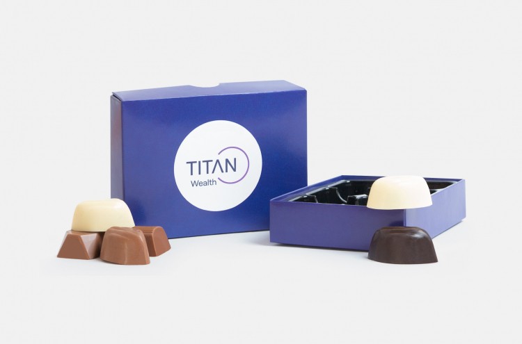 The gloss finish on these lightweight boxes gives a them a slick & accomplished finish, especially against the purple branding which gives the central visual queue a real pop! We've even had a few produced with our branding ourselves, not that the chocolates lasted!
