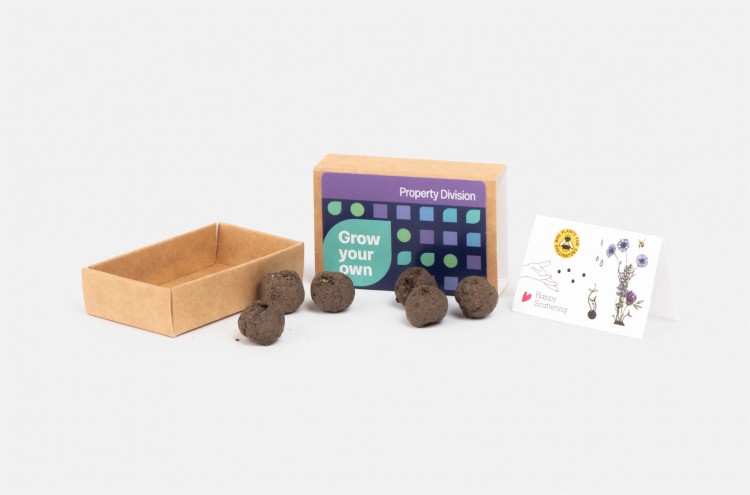 Pocket-sized help for pollinators is possible with these boxes to make things bloom. Calm and cool in a green, blue and purple colour-way, the large label is fully customisable to the outer packaging to readily promote your brand, whilst keeping those wondrous wildflower pellets enclosed until you find that blank dirt canvas.
