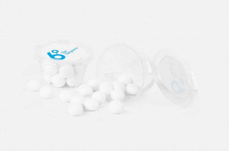 We love these lightweight mint imperial eco pots we produced for Six Degrees, with a simple digital print to the top of the pots in their famous cyan blue, the vibrant white feel of the pots really helps the logo pop!