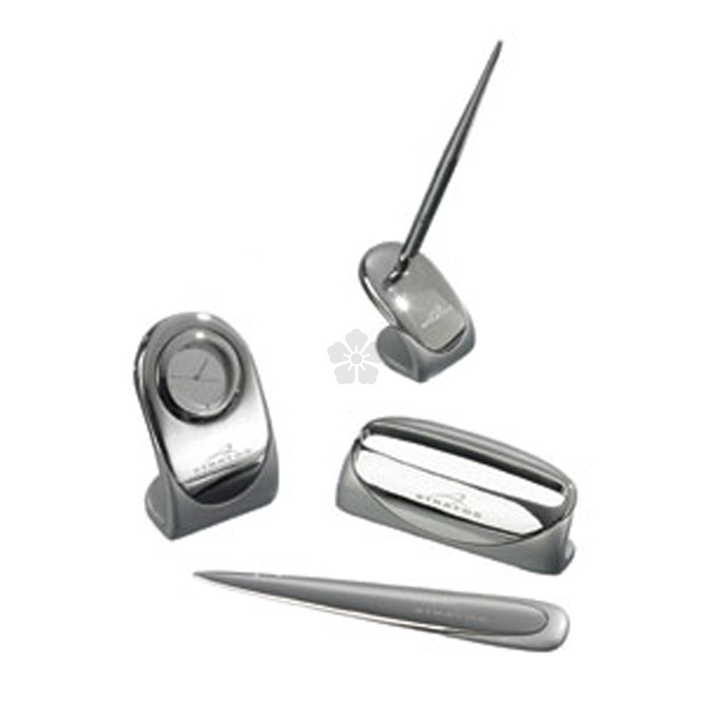 Mayfair Set Home > Personalised Gifts > Personalised Classic Gifts > Promotional Executive Gifts > Mayfair Set (MP11062) Product Description Archived Item. Card holder, clock, letter opener and pen stand in a deluxe box. Advert laser engraved on all 4 items. Prices Quantity: 25+ 50+ 100+ 250+ Laser Engraved (£):26.19 23.45 22.51 21.70 Delivery (£): 19.60 31.50 55.65 128.45 Note: Setup is charged at £37.50. Branding & Delivery Info Delivery Time: 2 - 3 weeks from PDF proof approval* Product Colours: Silver Branding Method: Laser Engraved View Artwork Guide: * Delivery Times shown are for guidance only, these can often be reduced. See Your Logo On This Item Please send me a free mockup of my artwork on the Mayfair Set Preferred Product Colour: Upload Artwork*: Request A Sample Please send me a plain stock sample of your Mayfair Set Preferred Product Colour: Delivery Address*: Get A Quick Quote Product Colour*: Quantity Required*: Print Colours*: Branding Position*: Notes: Delivery Date: Upload Artwork: Your Details Name*: Company*: Email Address*: Telephone*: I have read and agreed to the Terms and Conditions* Add To Basket Request Callback How To Order A few things and we'll be in touch: My name is: and I am with: You can reach me at: &: I'd like to ask: RE: Mayfair Set (MP11062)