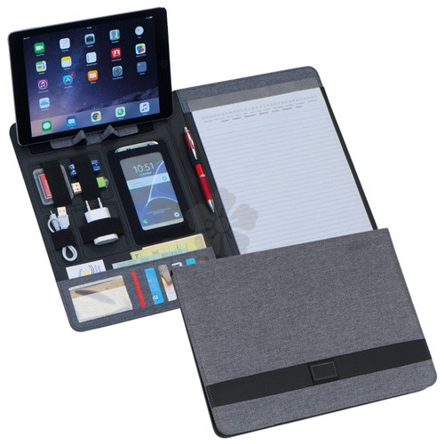 With 30 sheet lined paper writing pad, tablet holder, mobile phone pocket, 4 elastic straps, a pen loop and 7 compartments inside. A perfect business companion for client meetings or at work in the office.