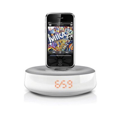 Archived Item. Delivering great sound, this compact unit will sync with your iPhone/iPod's clock settings. Features alarm, adjustable night light and charging USB port for a 2nd gadget.