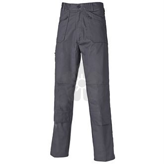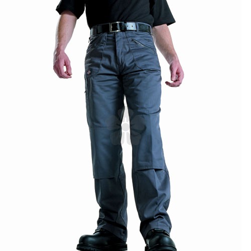 Archived Item. Button and zip fastening. Numerous pockets including: zipped hand pockets, one zipped thigh pocket, two zipped back pockets. External knee pad pouches. Size: Waist 30" - 42". Plain goods.