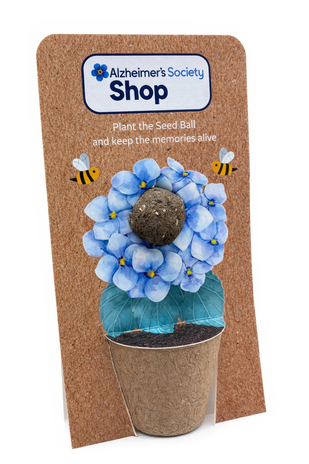 Made here in the UK, this nifty item includes your choice of a Sunflower or Forget me Not seed ball supplied in a compostable mini pot, with beautiful full colour branding to both sides of the outer card.