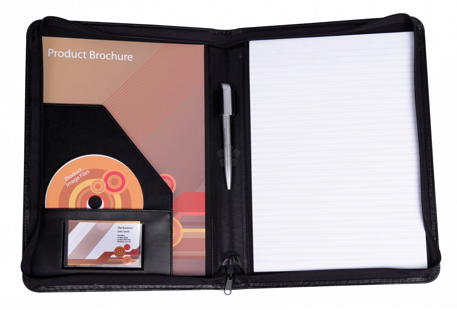 Zipped for extra security, the Vogue Folder contains a multitude of pockets for pens, pads and more.