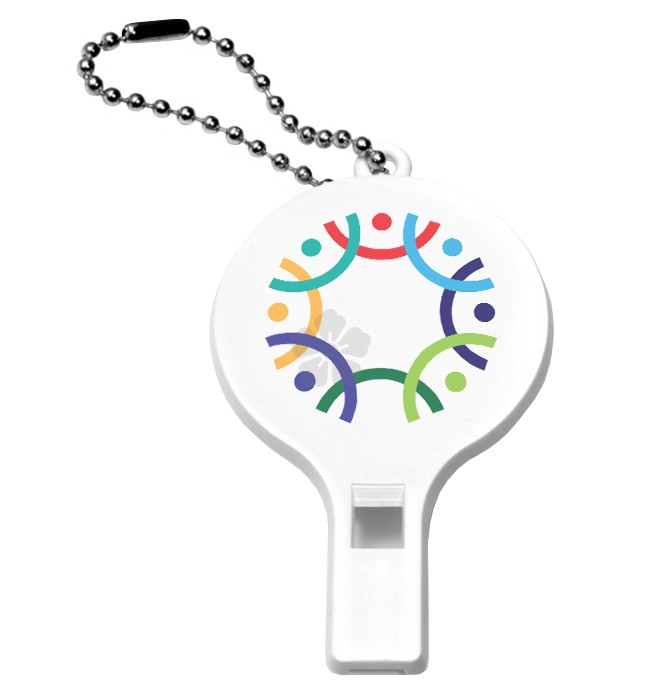 Make some noise with our custom printed Promo Whistle. Produced here in the UK from recycled hard durable plastic, the ball chain fitting makes this ideal for attaching to your keyrings, lanyard or hooking around your fingers for use on the go!