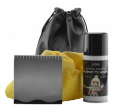 Containing an automotive de-icer spray, chamois cloth and wave shaped ice scraper, presented in a velvet lined luxury gift bag. Full colour label on the de-icer, 1 colour print on the ice scraper or full digital at extra cost.